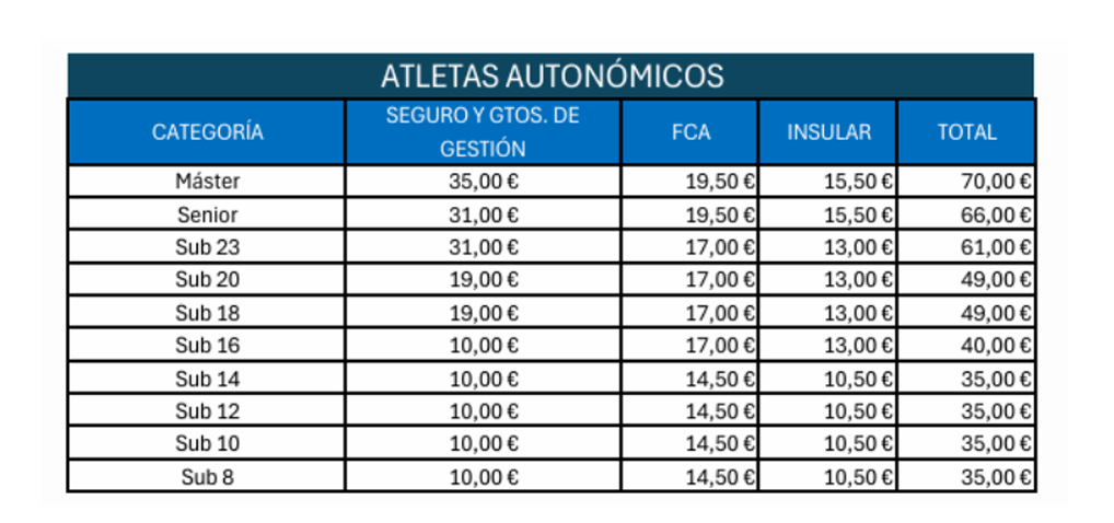 – Normativa licencia FCA: https://atletismocanarias.es/wp-content/uploads/2025/10/Normativa-de-Licencias-2026-FCA.pdf